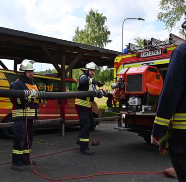 am Feuerwehrhaus im Juli